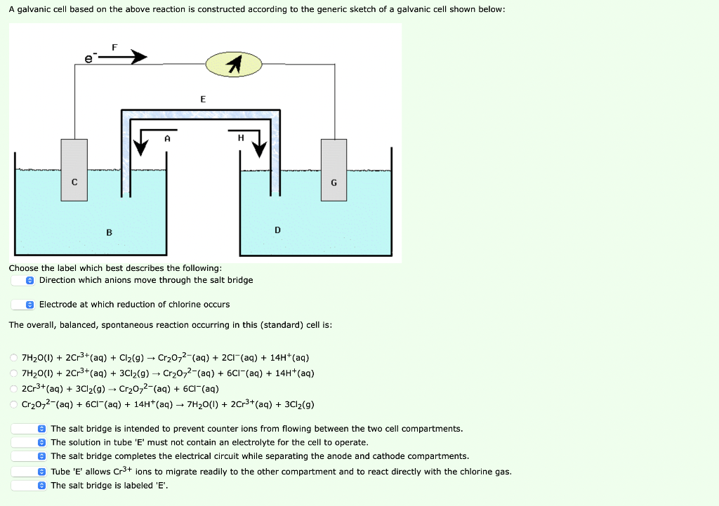 Which of the following factors affect the rate of corrosion. The option that best describes a galvanic cell is that a battery containing a spontaneous redox reaction. Construct a labelled diagram for the following cell.
